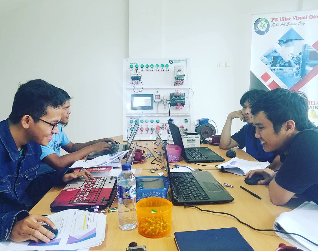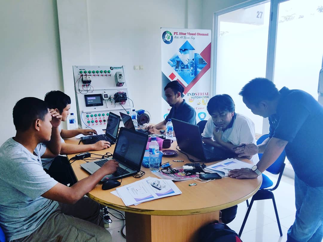untuk training di istar ada 3 paket pembelajaran, yaitu PLC (programmable logic control, human machine interface, dan SCADA.) untuk PLC kita menggunakan PLC SIEMENS S7-1200, dapat konsultasi type siemens yang lainnya. dan peserta boleh membawa sendiri plc jika ada pertanyaan atau pelatihan yang lebih spesifik untuk HMI kita menggunakan HMI Siemens, Weintek, atau Haiwell. untuk SCADA kita menggunakan AVEVA Edge Studio atau bisa custom sesuai permintaan peserta.